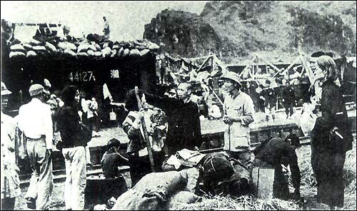 When the Japanese advanced to near Liuzhou, the railway station there was crowded with refugees and their goods.