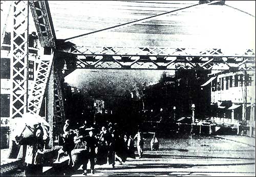 The war made countless Guangzhou residents homeless. Pictured are refugees on the Pearl River Bridge.