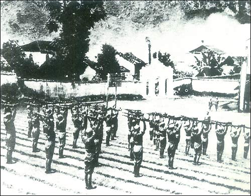 In October 1943, the Chinese Expeditionary Force entered Burma for the second time. Shown are Chinese troops practicing drills near Xingkai, Yunnan Province.