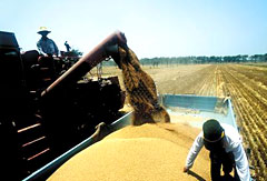 In the 1990s, though China's agriculture and rural economic development were confronted with many unprecedented difficulties and challenges, they still maintained a fairly good momentum of development. In the five years 1996-2000, the total increment of agriculture in the GDP came to 7,129.18 billion yuan. Calculated according to constant prices, the annual average growth rate stood at 3.5 percent, showing a stable growth tendency. The production of grain and other major agricultural products had bumper harvests for many years running. In 1995, the grain output came to 466.62 million tons, which rose to 512.3 million tons in 1998, the highest figure in history. In 2000, although China suffered from a specially serious drought, and the prices of agricultural products remained in the doldrums in a sustained way, the total grain output still came to 462.18 million tons. Now China leads the world in the output of grain, cotton, rapeseed, leaf tobacco, meat, eggs, aquatic products and vegetables.