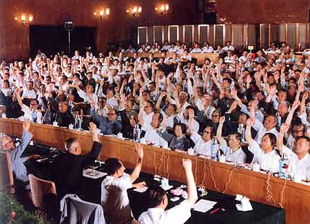 At the turn of spring and summer, 1989, under the influence of the international and domestic climate, there was a rampant tide of bourgeois liberalization, eventually leading to the turmoil and counterrevolutionary rebellion. Representing the fundamental interest of the people, the CPC Central Committee took resolute and timely measures to curb the turmoil and quell the counterrevolutionary rebellion. As a result, the fruits of the Chinese revolution and construction and the socialist system were safeguarded. At the Fourth Plenary Session of the Thirteenth Central Committee of the CPC, a new central leadership, with Jiang Zemin at the core, was elected. Since then, the Party has carried out the basic line of "one focus, two basic points" initiated by Deng Xiaoping. It has taken a clear-cut position of adhering to the Four Cardinal Principles, continuing with improving the economic environment and rectifying the economic order and deepening the reform. It has also strengthened the building of the Party and the ideological and political work. As a result, the socialist modernization construction is gaining further development. With full confidence, people of the whole country have united around the Party and are striving to build a powerful socialist modern country.