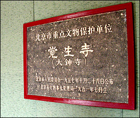 After it was moved to the Temple of Awakening, the Yongle Bell became an important musical instrument for Buddhist services at the temple. From then on, the big bell reverberated, Buddhist music was played and Buddhist monks held religious services on important occasions. As one of the major common practices in the capital city, people listened respectfully to the sound of the bell from the Temple of Awakening. The Yongle Bell was so well known that the Temple of Awakening was popularly called the Big Bell Temple. With the elapse of time, the original name of the temple was rarely known by the public.