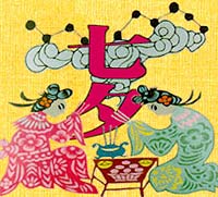 This festival is in mid-summer when the weather is warm and the grass and trees reveal their luxurious greens. At night when the sky is dotted with stars, and people can see the Milky Way spanning from the north to the south. On each bank of it is a bright star, which see each other from afar. They are the Cowherd and Weaver Maid, and about them there is a beautiful love story passed down from generation to generation.