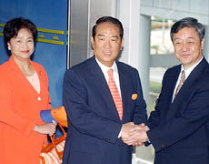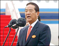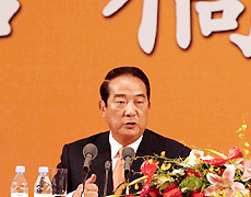 | Soong delivers a farewell speech on May 13, 2005 at the airport in Beijing. |