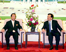 | Zeng Qinghong, a member of the Standing Committee of the Political Bureau of the Communist Party of China (CPC) Central Committee, meets with Soong. |