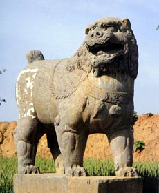 Yongchang Mausoleum: The mausoleum of the founding Northern Song Emperor Tai Zu (Zhao Kuangyin), two kilometers west of Yongan Mausoleum. Zhao Kuangyin was buried here in the 2nd year of the reign of Tai Ping Xing Guo (977). The base is 60 meters long east to west, 62 meters from north to south and the tomb is 21 meters high. There remain seven stone lions guarding the gates, seven stone human statues, four stone sheep, four stone tigers, four stone horses, two stone unicorns, two stone phoenixes, two stone elephants and two stone ornamental pillars.