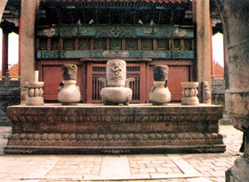 Stone sacrificial vessels in front of the Hall of Grand Favor