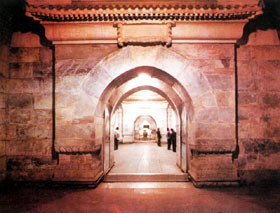 The underground palace occupies a total of 1,195 square meters. The vaulted halls are built of stone, without a single beam or column. To avoid damaging the marble floor, the surface from the antechamber to the rear hall was covered with thick planks for the hearse to roll on when it entered the underground palace, thick planks that can still be seen today.