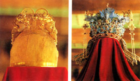 The archaeologists expected the remains would be enclosed in a wax coveting, but when the coffin containing Emperor Shen Zong was opened, only the unprotected skeleton was found, with the hair still in good condition. The hair was tied in a bun in which there were several gold hairpins, and some beard was still visible. The skeleton wore a gold crown, an imperial robe, a jade belt and boots. The emperor was not tall, one leg was a bit shorter than the other, and he was a hunch back.