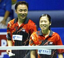 Chinese golden pair Zhang Jun and Gao Ling waltzed into the second round of the mixed doubles at the inaugural Badminton China Open in Guangzhou.