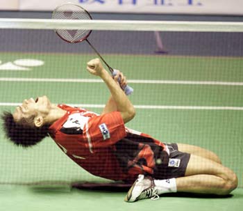 World top seed Lin Dan grabbed the men's singles title by beating Bao Chunlai 2:0 Sunday afternoon.