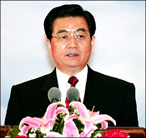 President Hu Jintao delivered a keynote speech at the opening ceremony of the 2005 Fortune Global Forum in Beijing Monday evening.