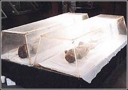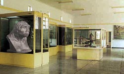 The front of the exhibition hall is a solid model of Longgu Mountain, with stone specimens dating back 100 to 400 million years in the Zhoukoudian area in the display cabinets, reflecting the geological changes in history. The models of the fossilized skulls, the fire relics and various stone tools of the Peking Man are exhibited in the No.1 Hall. The restored cave of the Upper Cave Man is in the No. 2 Hall. The No.3 Hall contains a necklace made by the Upper Cave Man as well as a model of the distribution of amniotes fossils and the dwellings of the ancient people. In the No.4 Hall are fossils of the ancient people found both in China and all over the world at different periods, stone tools and drawings, paintings and other artworks of the Paleolithic Period.