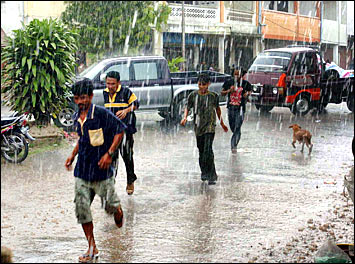 | Sudden heavy rain pounding Nias Island, Sumatra on March 31. The rain not only brought much trouble to local people, but also seriously hampered relief operations. According to the United Nations, more than 500 people have died on the island following Monday's earthquake, which measured 8.7 on the Richter scale. |