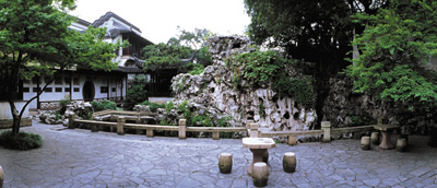 The mountain villa covers an area of 0.2 hectare, with houses built in front of a garden. Rockeries and the pond in which they are displayed form the centerpiece of the entire garden. To the west of the pond there are the side chamber and a corridor. The rockwork was created in 1807 by Ge Yuliang, an expert of artificial mountains. It is the most outstanding agglomeration of rocks among all the gardens in Suzhou.
