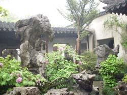 An artificial hill made of rocks from Taihu lake is always a major component of Suzhou gardens. The 6.5-meter-high Cloud-Capped Peak in this garden, which is the highest of its kind found in Suzhou's classic gardens, is believed to have been a collection from Northern Song Dynasty. Weighing about five tons, the limestone is supposed to have been carried here from the Taihu Lake, 40 km away.