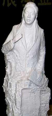 China will make two statues for Iris Chang, the late former female reporter of the Associated Press, for her exposure of "atrocities committed by Japanese aggressors" in China and the spirit to "dig up the historical truth." A group of eminent Chinese artists and scholars discuss the clay model of the work in Beijing June 21, 2005. Chang published her book The Rape of Nanking - The Forgotten Holocaust of World War II in 1997, which enabled Europeans and Americans to know the details of the Nanjing Massacre for the first time. She was also considered a key member in retrieving Diaries of John Rabe, which provides crucial records of the Nanjing Massacre. Chang was found dead of suicide in San Francisco at age 36 on November 9, 2004. (Xinhua photos)