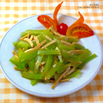 Directions: 1. Cut the celery on a slant into shreds. Quick-boil these along with bean curd cheese which should also be cut into shreds of preferable thickness. When the water boils, take out, drain off the water and place in a bowl.