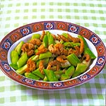 3. Heat other water to a boiling point. Put in the scallions, ginger, shrimps, and cooking wine and boil for 2 to 3 minutes. Add the towel gourd and take out to drain when water boils again. Put salt and MSG onto the gourd and boil it again. Mix and serve.