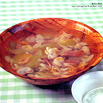 Ingredients: 250 grams (5/9 lb.) dried broad beans 100 grams (2/9 lb.) preserved sour cabbage 3 grams (1/2 tsp.) salt 1 gram (1/4 tsp.) MSG 5 grams (1 tsp.) sesame oil