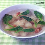 2. Put 750 grams (1.5 cups) of water in the pot. Shape the scallop and pork fat paste into balls by hand and drop them into the pot. Use a strong fire and let it boil for 2 minutes. Add the remaining salt, MSG, cooking wine and pea sprouts. Sprinkle the sesame oil and serve.