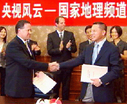 China Central Television and America's National Geographic have signed a cooperation agreement in Beijing. The deal states the American National Geographic channel will provide programs for CCTV's new channel "World Geographic".