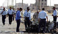 Iraqi police sealed off roads leading to blast site. Iraqi police fired warning shots into the air to disperse weeping and frustrated people racing to the area to learn the fate of their relatives.