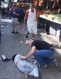 Israel Radio reported police said the explosion was a terrorist attack. "A suicide bomber exploded next to a vegetable stand inside the market," Tel-Aviv Police chief Cmdr. David Tzur said.