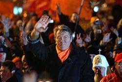 Yushchenko said the changes must ban voting by absentee ballot and at home, which he said was used by Yanukovych supporters to rig the Nov. 21 runoff. The changes also must ensure opposition supporters are represented on election commissions across the nation, he told the rally.