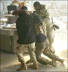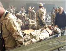 Near the front entrance, troops tended a soldier with a serious head wound, but within minutes, they zipped him into a black body bag, he said. Three more bodies were in the parking lot.