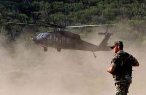 The helicopter, used in the US-funded anti-drug effort called Plan Colombia, went down just after midnight near the town of Tumaco, 230 miles southwest of the capital.