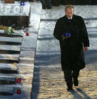 During the ceremonies, Russian President Vladimir Putin paid tribute to the Soviet troops who liberated the death camp.