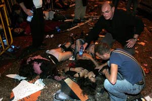 "We found young people lying on top of each other, most of them moderately to seriously wounded," said Alon Kotler, a paramedic who treated several of the wounded.