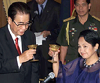 Before the meeting, President Arroyo and Li witnessed the signing of four cooperation documents between the two countries, including an agreement under which China will provide a loan of about US$25 million to the Philippines for its expansion project in the southern port city of General Santos.