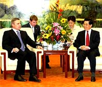 At a meeting with Russian Prime Minister Mikhail Kasyanov, who is here for an official visit, Hu said in recent years, China and Russia had made full use of the cooperative mechanisms between the two governments and actively implemented the important consensus reached by their leaders.