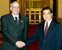 Couchepin agreed with Hu and said that Switzerland hopes to promote dialogue with China in such international organizations as the United Nations and the World Trade Organization.