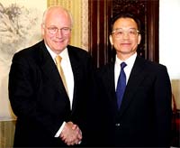 Chinese Premier Wen Jiabao started a meeting with US Vice President Dick Cheney in Beijing Wednesday, and the meeting is still going on at press time.