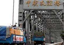 A dozen trucks loaded with relief goods and food left the Chinese city of Dandong on the Sino-Korean border for the Democratic People's Republic of Korea (DPRK) on Sunday.