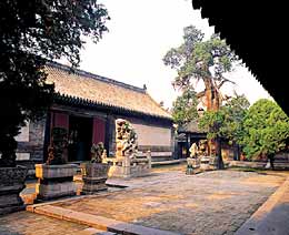 The Confucian Temple, in the center of Qufu City, was built in 478 BC. There are still 466 halls, pavilions and other rooms intact, covering a total area of 21.8 hectares. Repeated improvement and expansion has turned the temple into a palatial complex with nine rows of courtyards. The Great Accomplishment Hall, the major structure of the temple, is 33 meters tall. It is roofed with yellow glazed tiles and has octagonal eaves. The front 10 stone columns are carved with dragons. In addition to a statue of Confucius, the hall also houses stone inscription of the Ming Dynasty, which tells the life story of Confucius in 120 pictures, as well as a great deal of stone tablets.