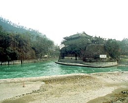 The Dujiangyan Irrigation System is a pearl in the water works construction of ancient China. Built over 2,200 years ago, it still provides benefits for the people. The irrigation system was erected on the Minjiang River at the foot of Yulei