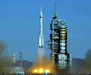 China's first manned spaceship -- Shenzhou V (Divine Vessel V) blasted off into space at the Jiu Quan Satellite Launch Center in Northwest China's Gansu Province at 9:00 am Wednesday morning October 15, 2003. The control center described the launch as a success.