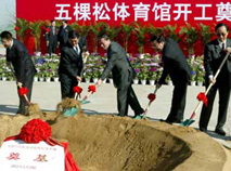 Workers broke ground for the construction of Wukesong Indoor Stadium on Tuesday in continued preparation for the capital's Olympic Games.