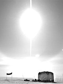 Even with their experience, the curious sight of exhaust smoke from the snowmobiles falling vertically instead of floating up, struck the team -- air in Antarctica floats down because of the pressure of movement of air currents passing the bottom of the Earth.