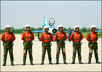 The August First team, based in Yangcun in Tianjin, is known as China's "Flying Ambassadors of Friendship". They have performed about 320 times for VIPs from 100 countries since their establishment in 1962 and are China's only full-time military aerobatic team.