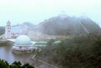 An overlook of newly-built Popular Science Planetarium on the Wuzhi Peak in Meizhou City, south China's Guangdong Province July 11, 2002. The planetarium, designed by the Chinese Academy of Sciences, is composed of ancient hall, celestial body hall and universal hall etc.