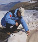 Chinese glaciology professor Zhang Wenjing, who, on a scientific investigation tour in the North Pole, has discovered snow algae on the Longyearbyen Glacier of Svalbard Islands.