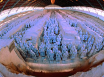 So far, only three vaults containing thousands of terracotta figures (known as bing ma yong) have been found 1.5 kilometers east of the mausoleum, and two sets of large bronze chariots and horses were excavated west of the mausoleum.