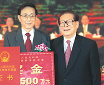 At an award ceremony held in Beijing Friday, Chinese President Jiang Zemin presented Jin with the 5-million-yuan (US$604,500) State Preeminent Science and Technology Award for 2002.