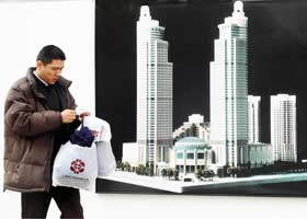 The distance between the two towers at Xujiahui is no more than 50 meters, and strong wind may probably be formed if no scientific design is made. But the wind can be avoided through planting trees in proper places and adjusting the height of other buildings, expert said.