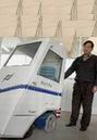 Gong Jun, deputy dean of the Lanzhou University of Science and Engineering, presents the newly-invented negative pressure isolation cabin used for the prevention of the Severe Acute Respiratory Syndrome (SARS) and other respiratory diseases in Lanzhou, capital of northwest China's Gansu Province, Dec. 18, 2003.